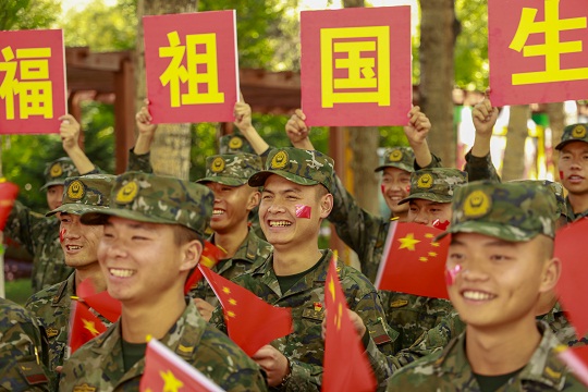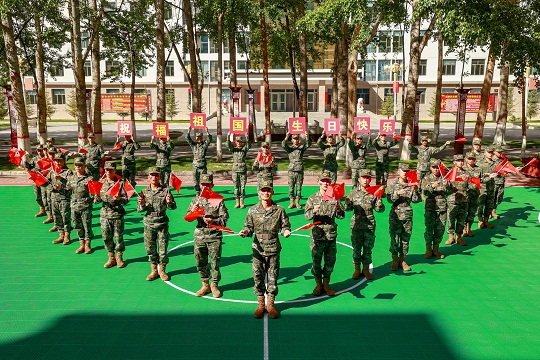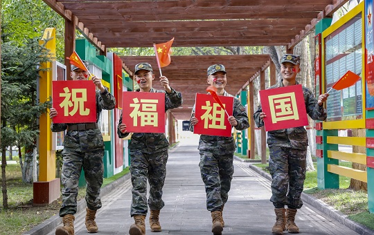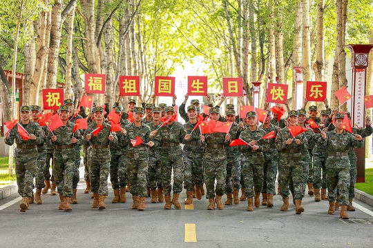 國(guó)慶前夕,武警青??傟?duì)開(kāi)展“向祖國(guó)深情告白”主題活動(dòng),官兵們通過(guò)與國(guó)旗合影、組織升旗儀式等形式,向偉大祖國(guó)深情告白,祝福偉大祖國(guó)繁榮昌盛。圖為官兵揮舞國(guó)旗喜迎國(guó)慶。