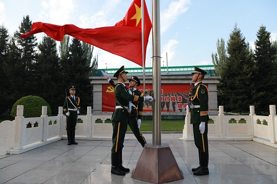 在玉樹高原,升旗儀式結束后,官兵意猶未盡,積極開展“向祖國深情告白”主題活動,大家臉上貼著、手中揮舞著小國旗,與國旗合影,互相表達對祖國的熱愛,現(xiàn)場氣氛熱烈。大家紛紛表示:祖國的強大、人民的幸福、社會的穩(wěn)定,是武警官兵矢志不渝的崇高追求。我們一定時刻牢記使命,忠實履行職責,以更高的工作標準、更昂揚的精神狀態(tài)、更扎實的工作作風,有力維護玉樹地區(qū)社會大局穩(wěn)定,永遠做黨和人民的忠誠衛(wèi)士。