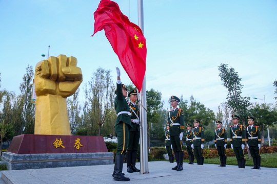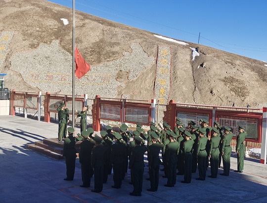 升旗是一項神圣的儀式,更是對靈魂的一次洗禮。當天,該總隊各基層部隊也紛紛舉行了升旗儀式,為祖國慶生。在海拔4800多米的昆侖山,擔負青藏鐵路昆侖山隧道守護任務的官兵升起國旗。這里高寒缺氧、風雪彌漫,條件極為艱苦,但官兵高喊“寧可生命透支,不讓使命欠賬”的口號,扎根高原、無悔奉獻。升旗儀式結束后,戰(zhàn)士羅昌強深情地說:“感覺所有堅守和辛苦,就為了這一面‘中國紅’!”