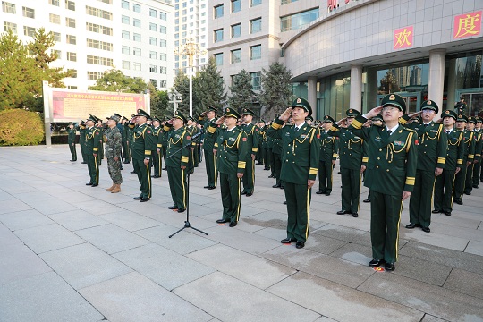 圖為總隊黨委機關升旗儀式現(xiàn)場。郭紫陽 攝