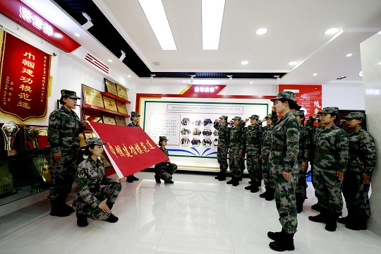 圖為話務(wù)連新兵觀賞連隊(duì)榮譽(yù)。王建英 攝