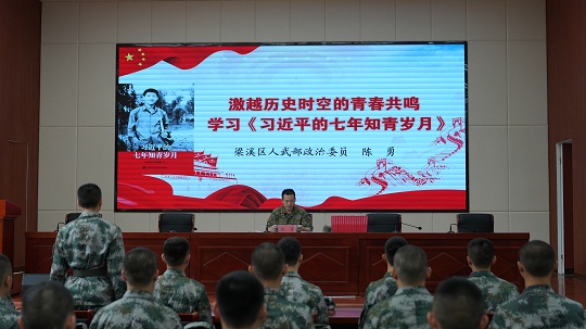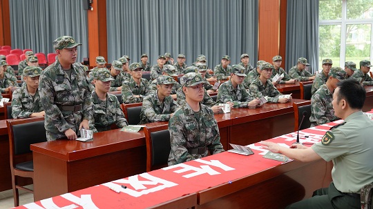 圖為梁溪區(qū)人武部政委陳勇進(jìn)行役前教育授課。