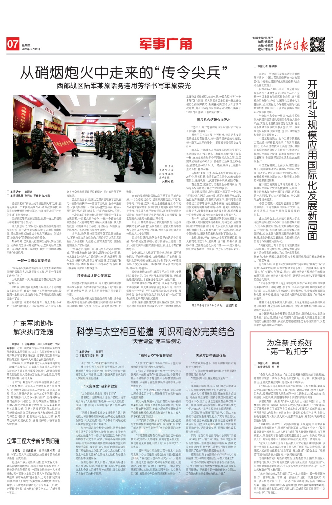 “此次役前訓(xùn)練,我們組織了發(fā)一本入伍指南、看一部愛國電影、學(xué)一首軍歌、送一本書、發(fā)一張聯(lián)系卡、進(jìn)行一次簽名儀式、開展一次入伍討論會‘七個(gè)一’活動。役前訓(xùn)練是預(yù)定新兵了解部隊(duì)的第一扇窗戶,組訓(xùn)目的不僅要提高他們的軍事素養(yǎng)和身體素質(zhì),而且要端正新兵參軍入伍的思想認(rèn)識,為新兵系好軍旅歷程中‘第一粒扣子’?!标愑抡f。