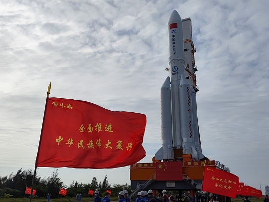轉(zhuǎn)運平臺上,“夢圓航天、正當其時”的鮮紅標語格外矚目,展現(xiàn)出中華民族筑夢“天宮”的美好愿景。學報告、悟思想、擔使命,任務中,西昌衛(wèi)星發(fā)射中心黨委按照“一個體系推進、三個重中之重”工作指導布局,組織開展“六大領航行動”,引導科技人員踐行“六大崗位行動”,發(fā)射場全體科技人員精心準備、精心組織、精心實施,堅決完成黨和人民賦予的時代重任,全力以赴打贏這場政治仗、科技仗、圓夢仗。