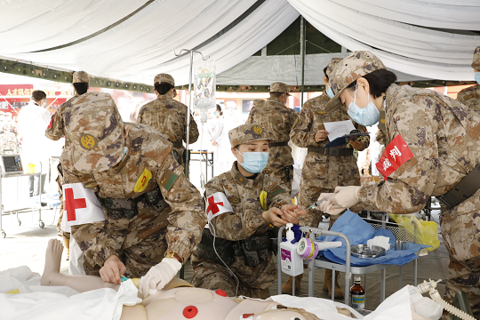據(jù)悉,中心護(hù)理部全年圍繞建立全域、全維戰(zhàn)創(chuàng)傷救治鏈條為目標(biāo),探索形成了一線戰(zhàn)傷救治的新理念、新標(biāo)準(zhǔn)和新模式,錘煉了護(hù)理人員“平時(shí)保健康,戰(zhàn)時(shí)保打贏”的過(guò)硬能力素質(zhì)。這次比武考核前,護(hù)理部收集各類戰(zhàn)場(chǎng)上的傷情數(shù)據(jù),研究現(xiàn)代戰(zhàn)爭(zhēng)傷情特點(diǎn),反復(fù)推敲設(shè)置標(biāo)準(zhǔn)化考場(chǎng),完善評(píng)分細(xì)則,模擬實(shí)戰(zhàn)救治的精心布設(shè)有力推動(dòng)了護(hù)理人員從專科到一線救治戰(zhàn)斗力的轉(zhuǎn)變,有效縮短了平戰(zhàn)轉(zhuǎn)換時(shí)間。