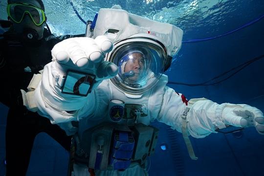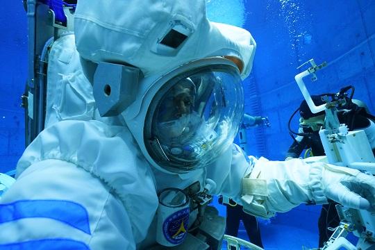 在圓形的模擬失重水槽中,航天員穿著數(shù)百公斤的水下服懸浮在藍(lán)色深水中。水下訓(xùn)練服相當(dāng)于一個“人”形飛船,是個鋼性結(jié)構(gòu),張陸的肩比較寬,每次把自己的兩只胳膊塞進(jìn)服裝里或者出服裝,都要費(fèi)盡九牛二虎之力。在水里一待就是五六個小時,整個人的四肢被固定在水下服里,癢了痛了都只能咬牙堅持,餓了渴了只能喝水。