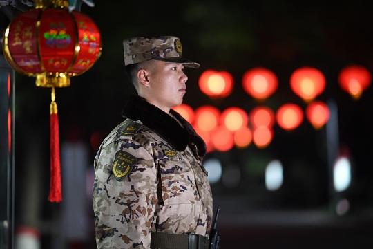 1月21日是農(nóng)歷除夕,武警江西總隊(duì)官兵堅(jiān)守執(zhí)勤崗位,守護(hù)一方平安,確保群眾度過一個(gè)平安祥和的新春佳節(jié)。圖為除夕夜,武警江西總隊(duì)警衛(wèi)勤務(wù)大隊(duì)哨兵周鈺博在南昌市某軍營堅(jiān)守執(zhí)勤哨位。本報(bào)通訊員 曹先訓(xùn) 攝