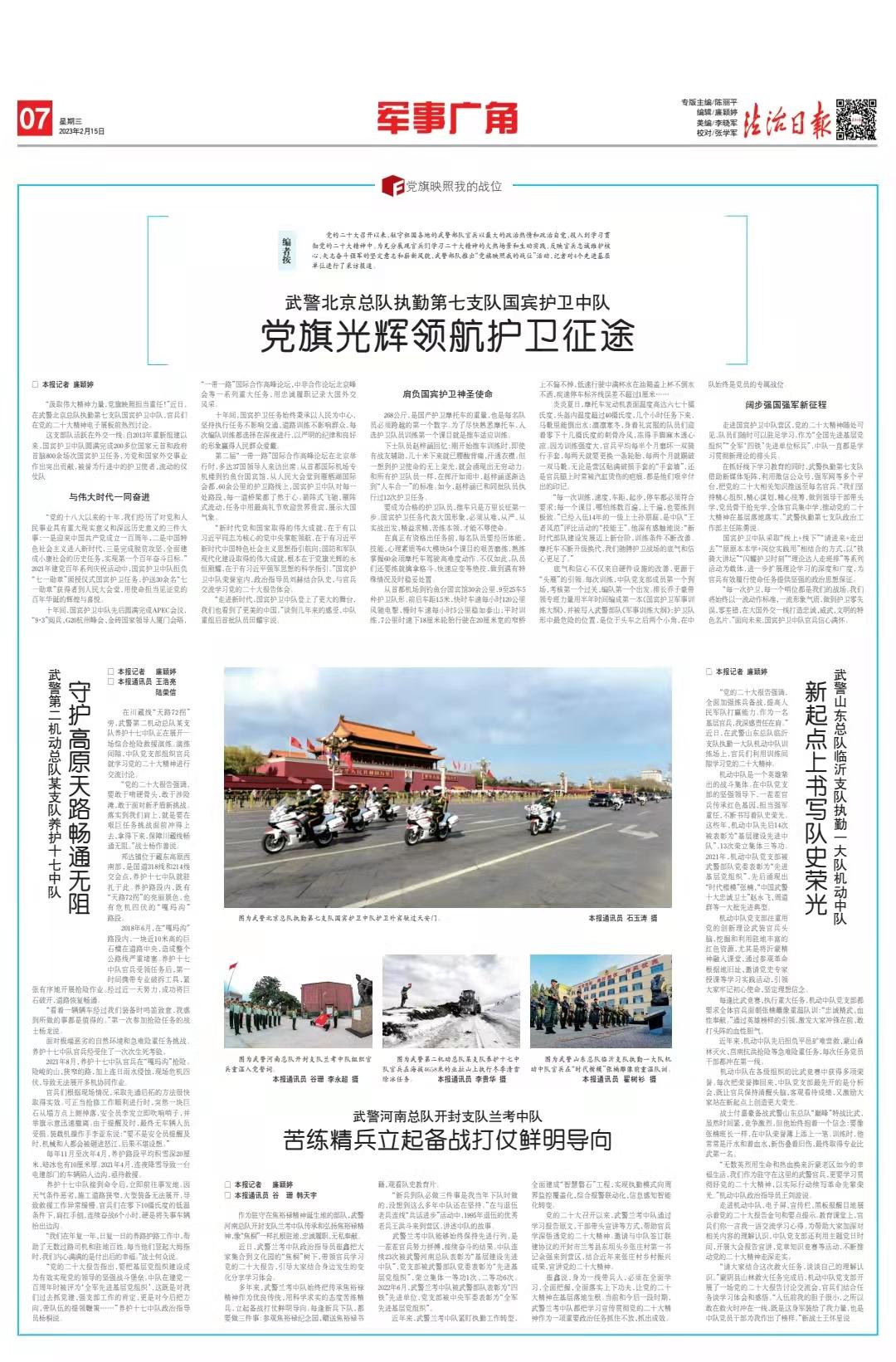 在抓好線下學(xué)習(xí)教育的同時(shí),武警執(zhí)勤第七支隊(duì)借助新媒體矩陣,利用微信公眾號(hào)、強(qiáng)軍網(wǎng)等多個(gè)平臺(tái),把黨的二十大相關(guān)知識(shí)推送至每名官兵。“我們堅(jiān)持精心組織、精心謀劃、精心統(tǒng)籌,做到領(lǐng)導(dǎo)干部帶頭學(xué)、黨員骨干搶先學(xué)、全體官兵集中學(xué),推動(dòng)黨的二十大精神在基層落地落實(shí)?!蔽渚瘓?zhí)勤第七支隊(duì)政治工作部主任陳勇說。