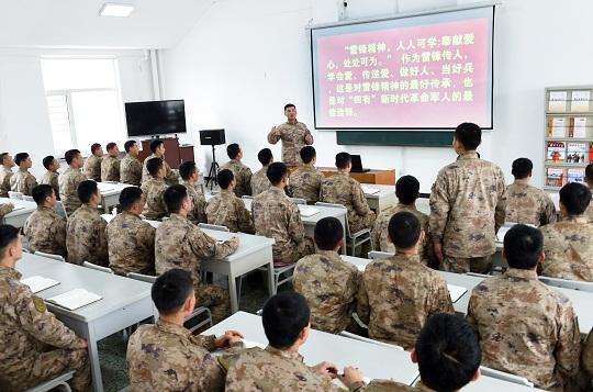 圖為第79集團(tuán)軍某旅“雷鋒連”指導(dǎo)員侯偉為連隊(duì)官兵上專題黨課。張永進(jìn) 攝