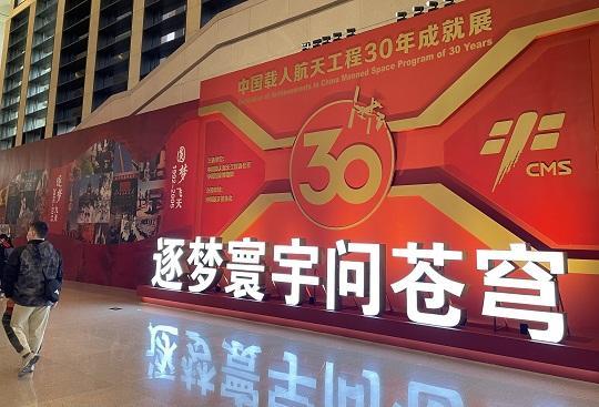 沿著成就展“光輝歷程”展板一路走下來,載人航天工程三十年歷程的時間畫卷徐徐展開。