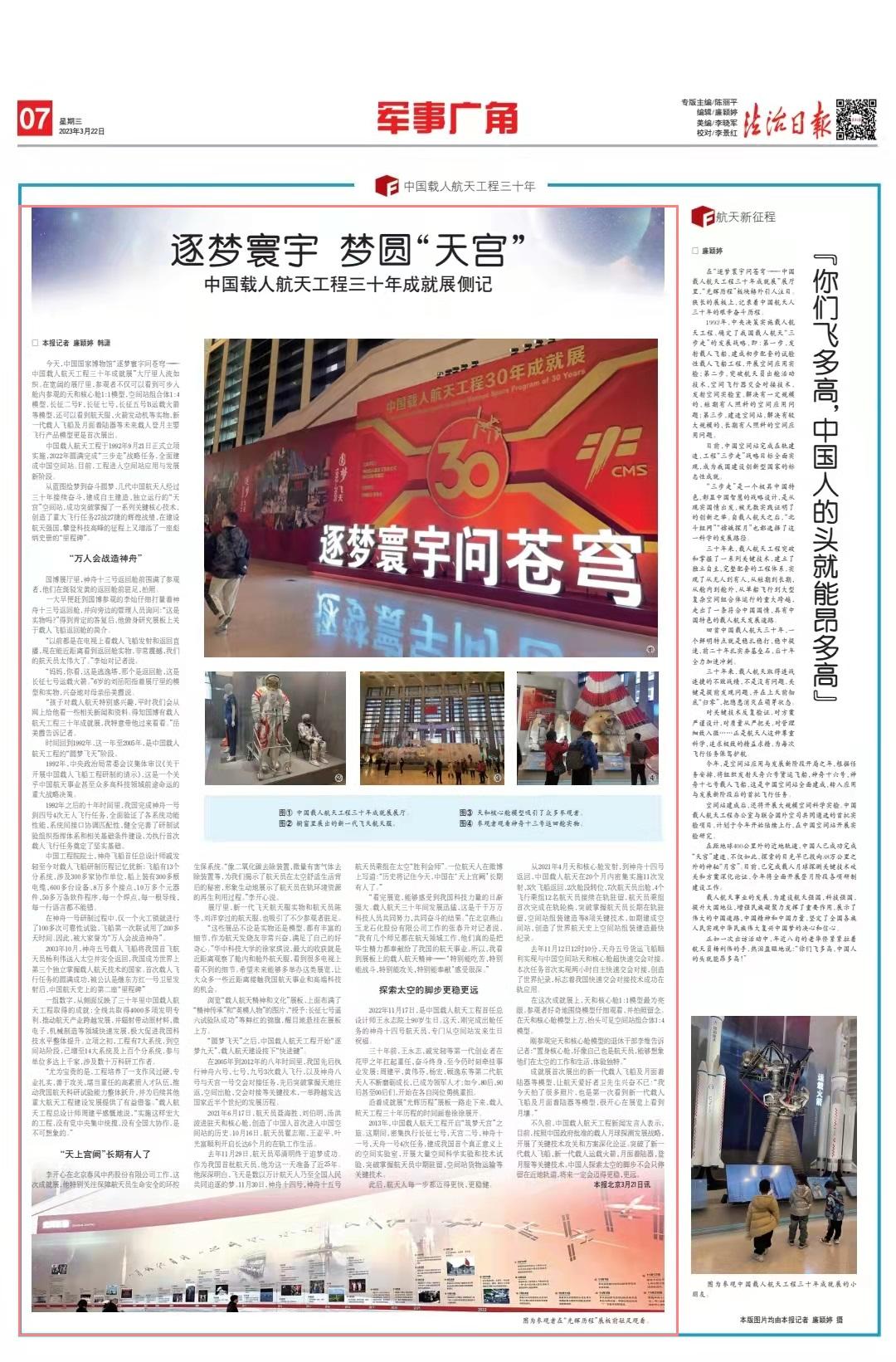 從藍圖繪夢到奮斗圓夢,幾代中國航天人經(jīng)過三十年接續(xù)奮斗,建成自主建造、獨立運行的“天宮”空間站,成功突破掌握了一系列關(guān)鍵核心技術(shù),創(chuàng)造了重大飛行任務(wù)27戰(zhàn)27捷的輝煌戰(zhàn)績,在建設(shè)航天強國、攀登科技高峰的征程上又增添了一座彪炳史冊的“里程碑”。