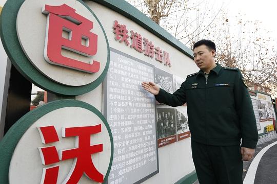 圖為武警山東總隊(duì)棗莊支隊(duì)組織紀(jì)檢股干事李命命學(xué)習(xí)支隊(duì)軍史長廊陳展。曹正寶 攝