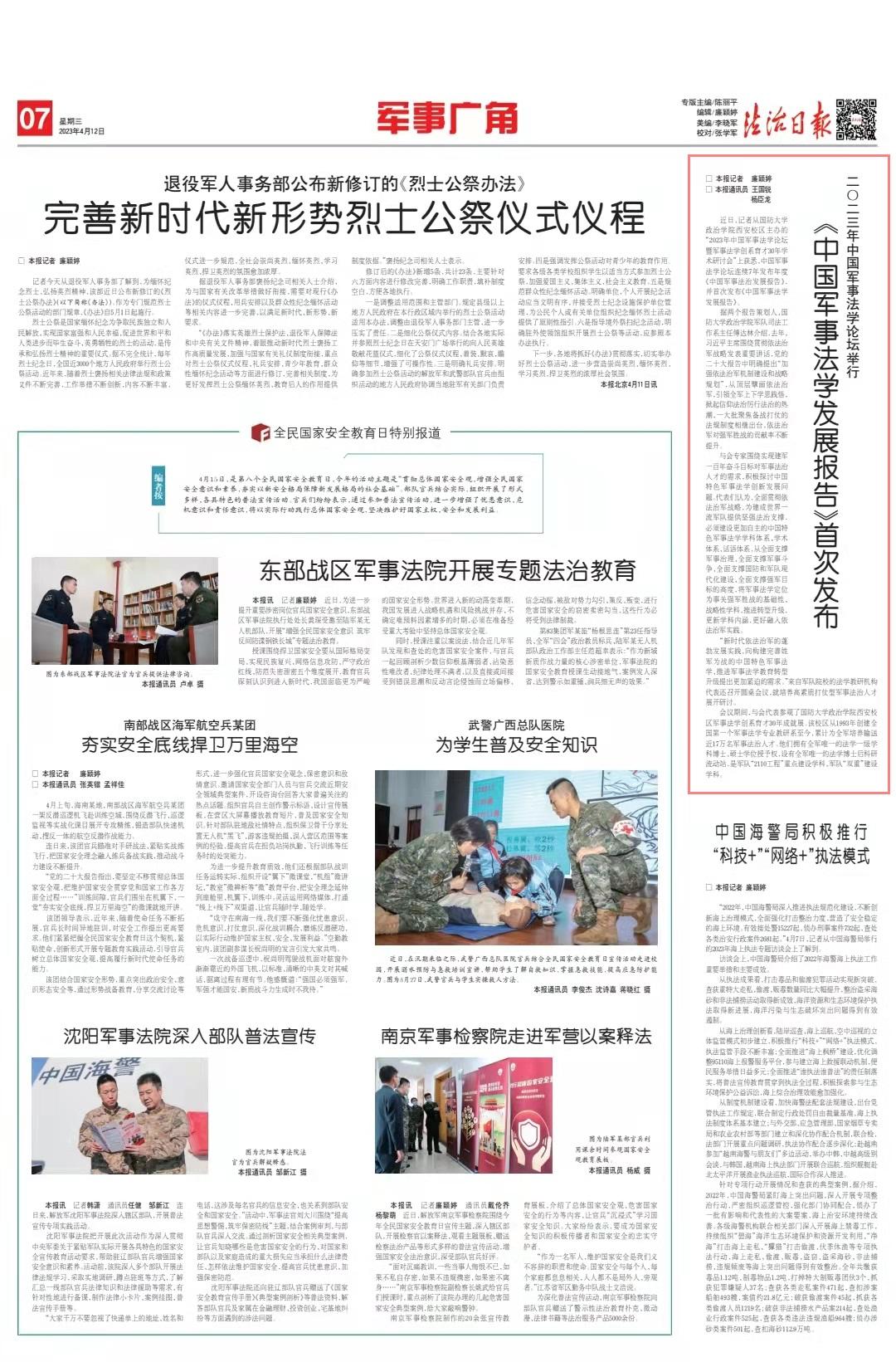 近日,記者從國防大學(xué)政治學(xué)院西安校區(qū)主辦的“2023年中國軍事法學(xué)論壇暨軍事法學(xué)創(chuàng)系育才30年學(xué)術(shù)研討會”上獲悉,中國軍事法學(xué)論壇連續(xù)7年發(fā)布年度《中國軍事法治發(fā)展報(bào)告》,并首次發(fā)布《中國軍事法學(xué)發(fā)展報(bào)告》。