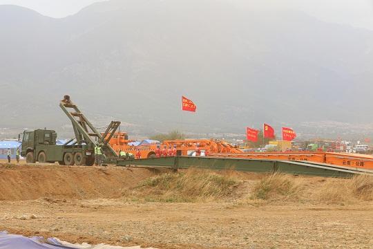 “地震”發(fā)生后,武警第二機(jī)動(dòng)總隊(duì)某支隊(duì)第一時(shí)間完成集結(jié),數(shù)十名官兵攜帶專業(yè)設(shè)備架設(shè)橋梁,搶通道路。