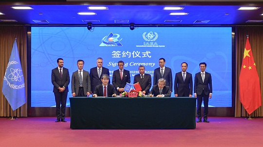 會見前,張克儉與格羅西簽署了《中國國家原子能機(jī)構(gòu)與國際原子能機(jī)構(gòu)關(guān)于小型模塊化反應(yīng)堆和核電基礎(chǔ)設(shè)施開發(fā)領(lǐng)域合作實(shí)際安排》,并共同見證國家原子能機(jī)構(gòu)、中核集團(tuán)、中國科學(xué)院合肥物質(zhì)科學(xué)研究院、中國原子能科學(xué)研究院等與IAEA簽署多項(xiàng)合作文件,內(nèi)容涉及核能應(yīng)對氣候變化、核技術(shù)診斷治療癌癥、核數(shù)據(jù)科學(xué)與核燃料循環(huán)、涉核新聞傳播與公眾溝通等多個領(lǐng)域。國家原子能機(jī)構(gòu)還向IAEA交付了一批由中方企業(yè)捐贈的核安保專業(yè)設(shè)備,以及38項(xiàng)由中方翻譯完成的IAEA核安全標(biāo)準(zhǔn)和核安保導(dǎo)則。