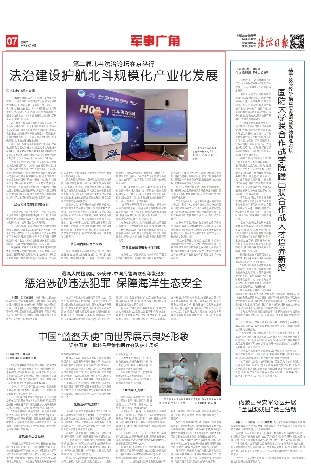 北斗系統(tǒng)工程總設(shè)計(jì)師楊長風(fēng)院士在北斗法治論壇致辭中指出,北斗系統(tǒng)的建設(shè)運(yùn)行、應(yīng)用發(fā)展、安全保障、國際化拓展等方方面面的工作都關(guān)系到法治,如何更好發(fā)揮法治固根本、促發(fā)展、利長遠(yuǎn)的保障作用,是一個(gè)富有挑戰(zhàn)性的理論和實(shí)踐問題,北斗法治建設(shè)任重道遠(yuǎn)。