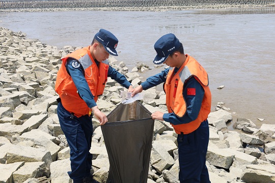 在日常轄區(qū)巡邏時,上海海警局執(zhí)法員持續(xù)發(fā)揮“海洋凈化小分隊”作用,主動為海洋“清潔”,對附近航道內及海岸堤壩上的各類垃圾進行清理。