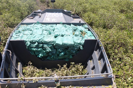 無(wú)人機(jī)始終鎖定目標(biāo)、執(zhí)法艇在后窮追不舍,歷時(shí)2個(gè)小時(shí)將走私摩托艇逼進(jìn)紅樹(shù)林?jǐn)R淺。經(jīng)檢查,該摩托艇載有凍雞爪一批,現(xiàn)場(chǎng)未發(fā)現(xiàn)該批凍雞爪合法手續(xù)及相關(guān)證明,涉嫌走私。經(jīng)清點(diǎn),該批凍雞爪5.3噸,案值約20萬(wàn)元。