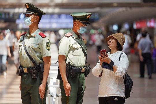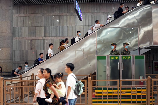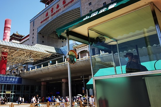 圖為北京豐臺站武警正在警惕執(zhí)勤。