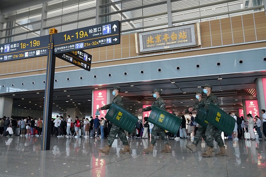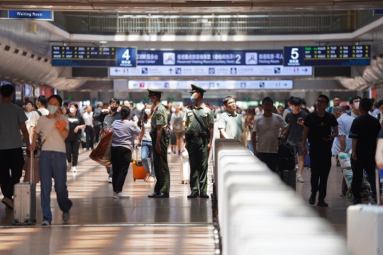 端午節(jié)期間,北京西站、北京豐臺站累計客流量將達100余萬人次,武警執(zhí)勤第六支隊駐守北京西站、北京豐臺站官兵全時堅守執(zhí)勤戰(zhàn)位,加強與駐地公安、目標單位聯(lián)系聯(lián)防,優(yōu)化方案預案,周密勤務部署,確保旅客安全順利出行。