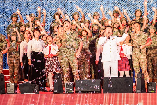 稚嫩的童音伴著雄壯的吶喊,純真的笑臉映著剛毅的眼神。希望與守護的和諧交融,深深感動著每一名現(xiàn)場觀眾。