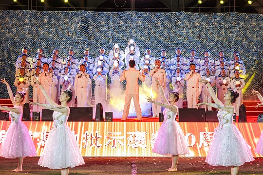 近日,北部戰(zhàn)區(qū)海軍某潛艇基地隆重舉行“牢記領(lǐng)袖囑托、鍛造水下先鋒”廣場歌詠展演。