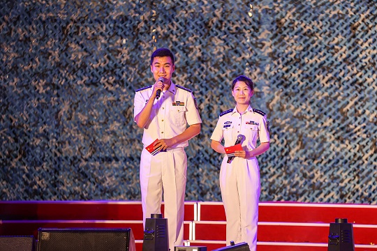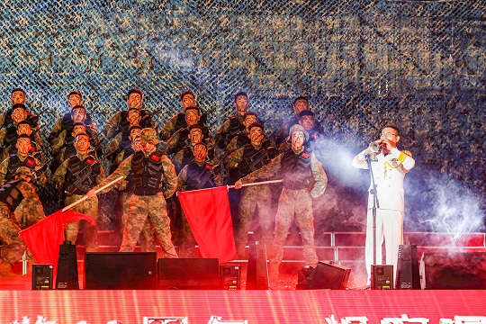 《岸訓(xùn)之歌》《壯志飛揚》《渴望光榮》《鯨港尖兵》等,演唱中靈活加入旗語、舞蹈、捧燈等元素,讓真情流露,讓情感升華。