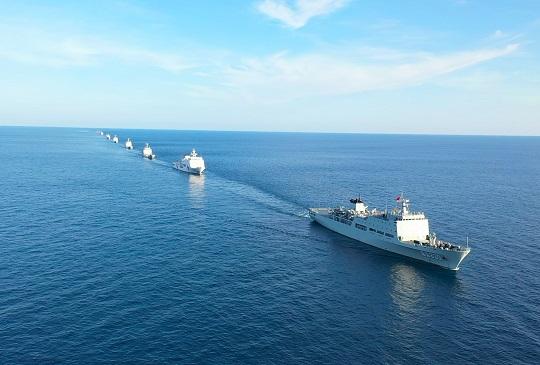 圖為南部戰(zhàn)區(qū)海軍某部組織編隊(duì)航行訓(xùn)練。武歡慶 攝