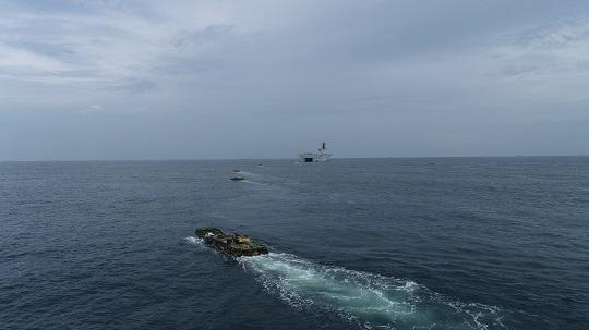 圖為粵東某海域,第74集團(tuán)軍某旅與海軍某部聯(lián)合組織浮渡裝卸載訓(xùn)練。顏新建 攝