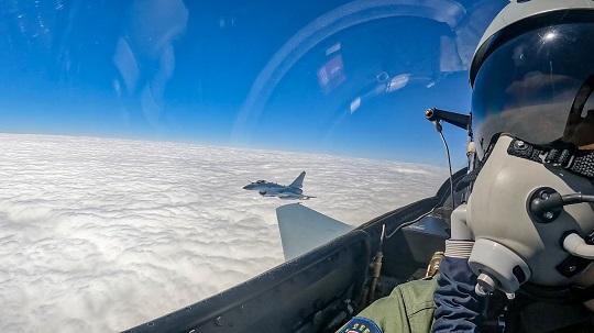 圖為南部戰(zhàn)區(qū)空軍某部長(zhǎng)僚機(jī)前往預(yù)定空域,即將展開(kāi)空戰(zhàn)對(duì)抗。王國(guó)云 攝