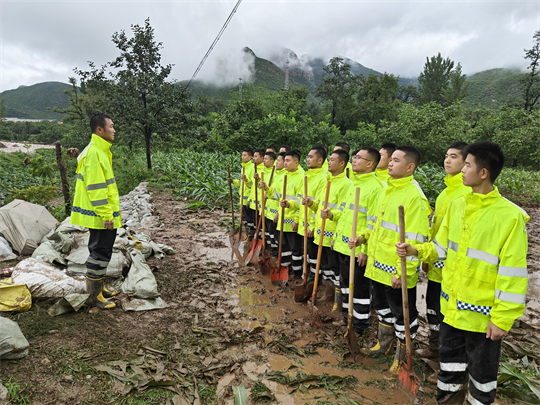 抵達(dá)被洪水圍困的核心區(qū)域,趙勇和戰(zhàn)友們排查民房,確保人員全部脫險(xiǎn)。這邊剛排查完,對(duì)講機(jī)中又傳來消息:“馬頭村水庫水位上漲,現(xiàn)急需構(gòu)筑堤壩,迅速派人前往守住大壩!”