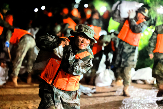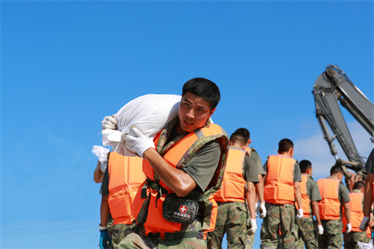 北部戰(zhàn)區(qū)陸軍聞令而動,截至8月16日,先后出動6570人執(zhí)行抗洪搶險救災(zāi)任務(wù),搜救轉(zhuǎn)移群眾3800余人、救治530人、疏通道路41.5公里、搶筑堤壩10.3公里、封堵管涌39處、防疫洗消184.5萬平方米。