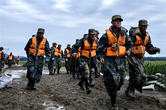 8月3日,五常市磨盤山水庫漫堤,下游村鎮(zhèn)情況危急。某工化旅奉命出征,400余名官兵駕駛挖掘機、裝載機,攜帶沖鋒舟、汽艇奮戰(zhàn)4晝夜,疏導(dǎo)公路35公里、搜救轉(zhuǎn)移被困群眾3000余人。