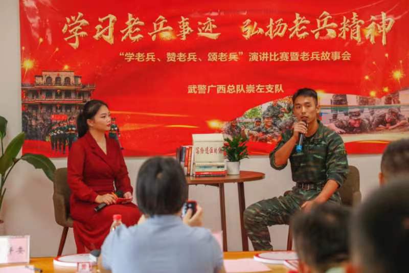 “一個(gè)故事一堂課,一個(gè)老兵一面旗?!睘樽屚艘劾媳惺艿焦鈽s感、自豪感、幸福感,武警崇左支隊(duì)專門組織從平凡崗位的人和事中挖掘最美老兵感人事跡,通過群眾“點(diǎn)贊身邊人”,讓廣大官兵從中汲取精神力量,讀懂老兵背后的榮光與艱辛,激勵(lì)留隊(duì)官兵傳承老兵精神,立足平凡崗位建功立業(yè)。