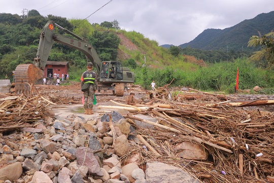 9月5日凌晨,福州市永泰縣葛嶺鎮(zhèn)連續(xù)強降雨,引發(fā)山體滑坡,造成道路中斷、交通堵塞,停水停電、群眾受困。武警第二機動總隊某支隊緊急派出應(yīng)急救援分隊,攜帶17套大型救援裝備,趕赴受災(zāi)現(xiàn)場。截至9月5日18時,官兵共清理修筑路基50米,清理塌方體17處,約5500方土石,運送物資100余份,同時,繼續(xù)對葛嶺鎮(zhèn)街區(qū)進行清淤,并計劃搶通另外兩條鄉(xiāng)村公路。