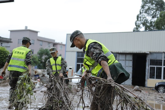 受臺風(fēng)“??庇绊懀B日來福建省福州市多地發(fā)生強降雨。武警第二機動總隊迅速派出官兵攜帶專業(yè)救援機械奔赴受災(zāi)一線協(xié)助地方政府開展搶險救援工作。