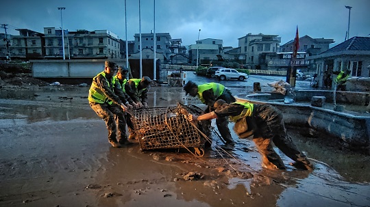 臺風(fēng)登陸后,福清市鏡洋鎮(zhèn)遭遇強降雨襲擊,發(fā)生洪澇災(zāi)害。接福清市人民政府函請,武警第二機動總隊某支隊于9月5日14時40分出動63名官兵,攜帶15臺(套)專業(yè)救援機械趕赴受災(zāi)一線,協(xié)助地方政府進行道路清障和供電搶修任務(wù)。