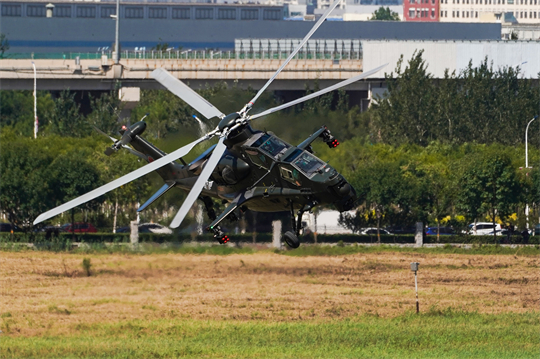圖為陸軍“風(fēng)雷”飛行表演隊(duì)直-10武裝直升機(jī)進(jìn)行飛行表演。張永進(jìn) 攝