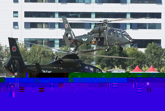 圖為陸軍“風(fēng)雷”飛行表演隊(duì)直-19武裝直升機(jī)進(jìn)行飛行表演。張永進(jìn) 攝