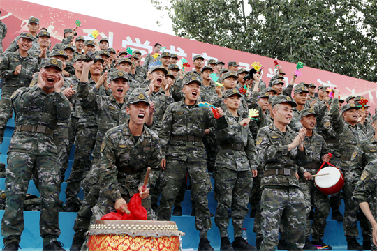 圖為啦啦隊熱情高漲為參加競賽的官兵加油助威。陳春越 攝