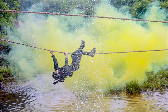 圖為武警第二機(jī)動(dòng)總隊(duì)某支隊(duì)五中隊(duì)官兵不懼危險(xiǎn)牽引橫渡。王夢林 攝