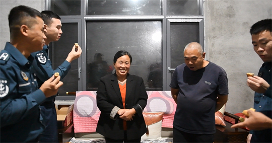 “叔叔,這邊天氣逐漸轉(zhuǎn)涼了,您要注意保暖?!薄笆迨灏⒁?,我們是想陪你們共度中秋節(jié),這是來(lái)之前執(zhí)法員們手工做的雙黃白蓮蓉月餅,非常地好吃。”海警執(zhí)法員詢(xún)問(wèn)汪曉龍父母的困難,同時(shí)帶去廣東海警全體執(zhí)法員對(duì)他們的問(wèn)候。