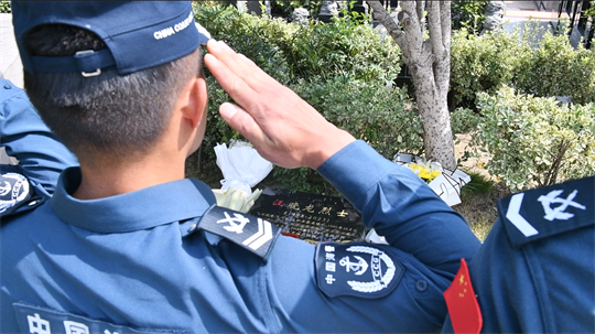 圖為海警執(zhí)法員在阜陽(yáng)太和縣烈士紀(jì)念館。