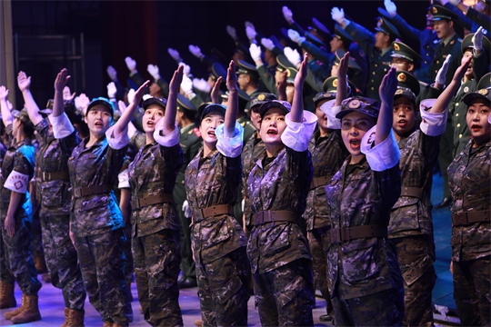 “向前,向前,向前,我們的隊(duì)伍向太陽……”最后,會(huì)場響起威武雄壯的《中國人民解放軍軍歌》,全體官兵齊聲高歌,士氣如虹。