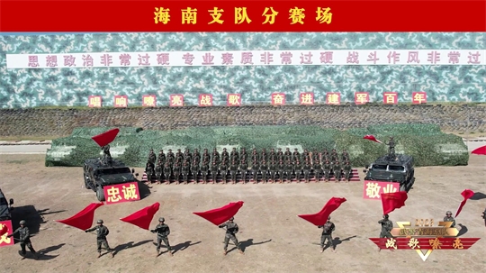 圖為武警青??傟?duì)海南支隊(duì)表演唱《寸土不讓》。