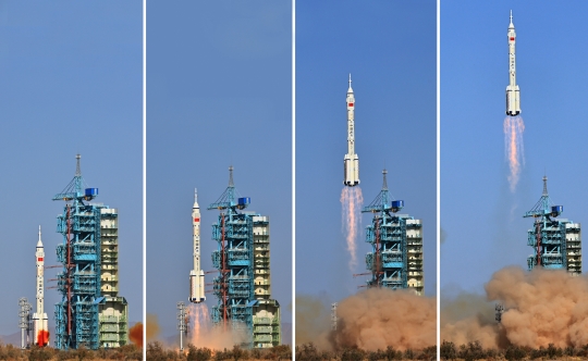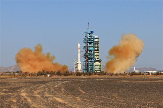 圖為10月26日,搭載神舟十七號載人飛船的長征二號F遙十七運載火箭在酒泉衛(wèi)星發(fā)射中心發(fā)射成功。新華社記者 李剛 攝