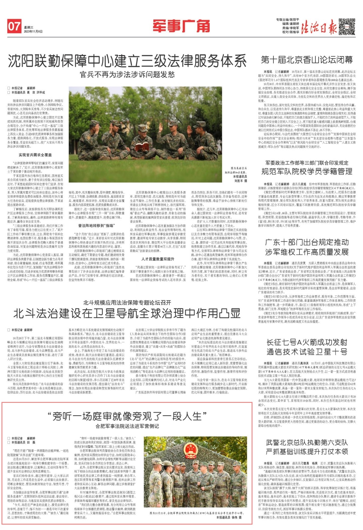 圖為10月25日,解放軍合肥軍事法院深入駐訓(xùn)一線開(kāi)展普法活動(dòng)。