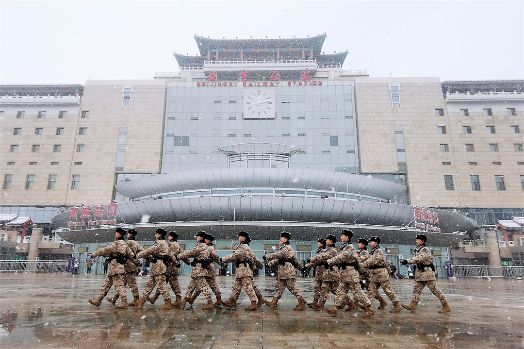 12月13日,北京市迎來強降雪和寒潮天氣,部分地區(qū)出現(xiàn)大到暴雪,對交通出行造成不同程度影響。武警北京總隊執(zhí)勤第六支隊加強與北京西站、豐臺站聯(lián)防聯(lián)動,及時調(diào)整勤務部署,確保旅客安全順利出行。