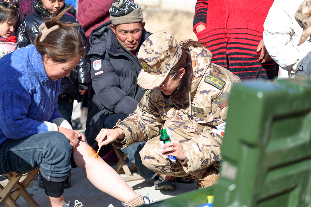 12月20日,武警甘肅總隊官兵在-15℃的天候下,不畏嚴(yán)寒、不懼艱險,為受災(zāi)群眾開展醫(yī)療巡診、御寒物資發(fā)放、救災(zāi)帳篷搭建等任務(wù),讓災(zāi)區(qū)受傷群眾倍覺溫暖。