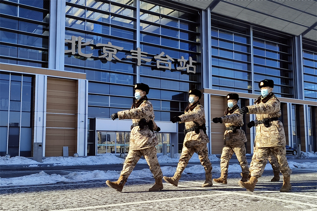 圖為北京西站武警官兵在去往哨位途中。